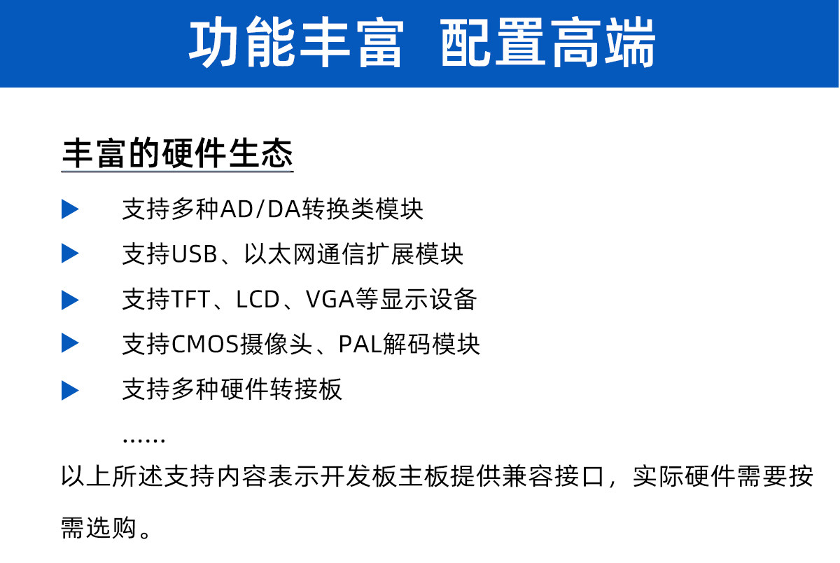 接口配置上,开发板实现了高速通信与多媒体接口的全覆盖: