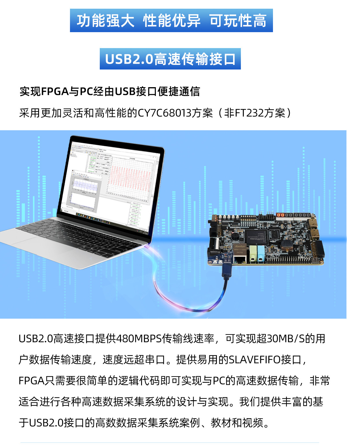 高速通信:集成千兆以太网口(支持 RGMII/MII 模式)与USB2.0 通信接口(采用 CY7C68013 芯片,传输速率超 30MB/s),配套 USB 转 JTAG、USB 转串口,兼顾调试与高速数据传输;